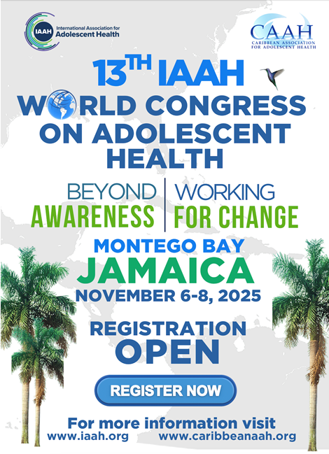 Join the 13th IAAH World Congress on Adolescent Health, a premier gathering of health practitioners (public health, health promotion, clinicians) researchers, policy makers, NGOs, youth health advocates and others from across the Caribbean and Latin America, the Pacific, Africa, Asia, Europe, the Americas and Oceania!